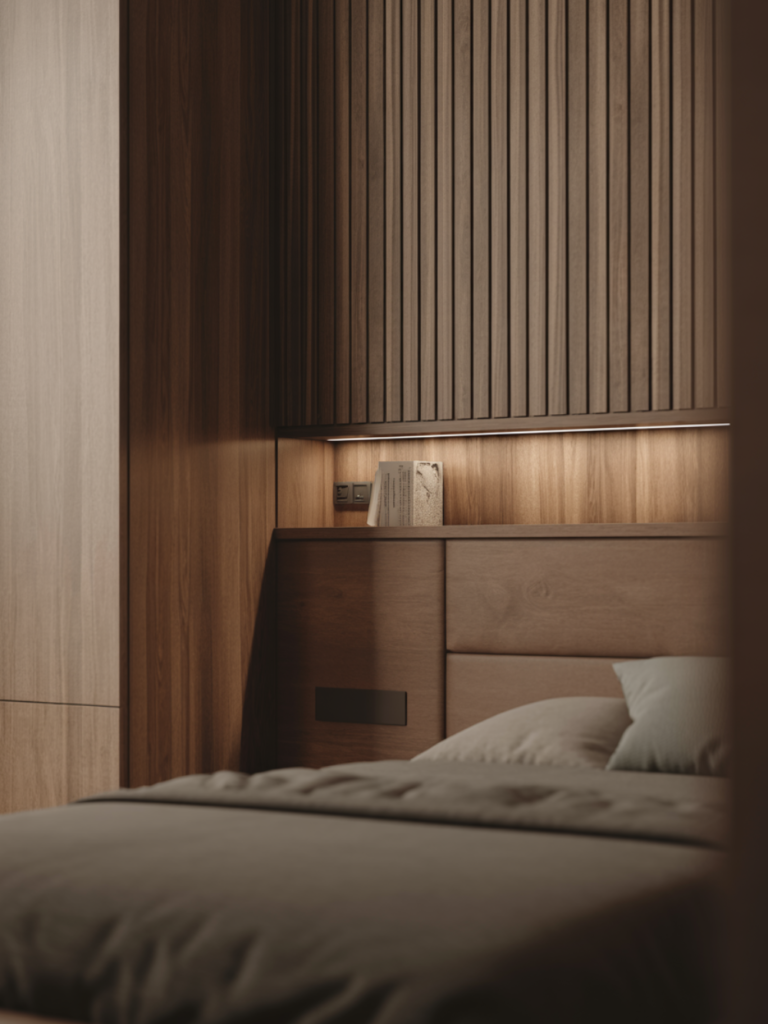 Lighting plays a major role here. Warm ambient lighting, either from bedside lamps or subtle LED strips, adds depth and creates that calm, hotel-like atmosphere.